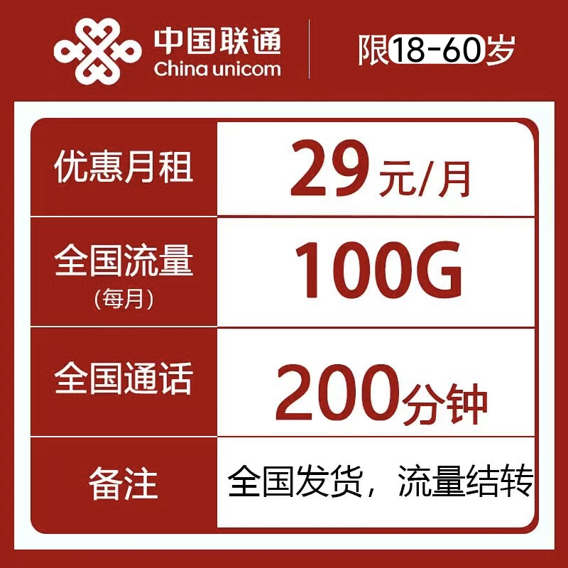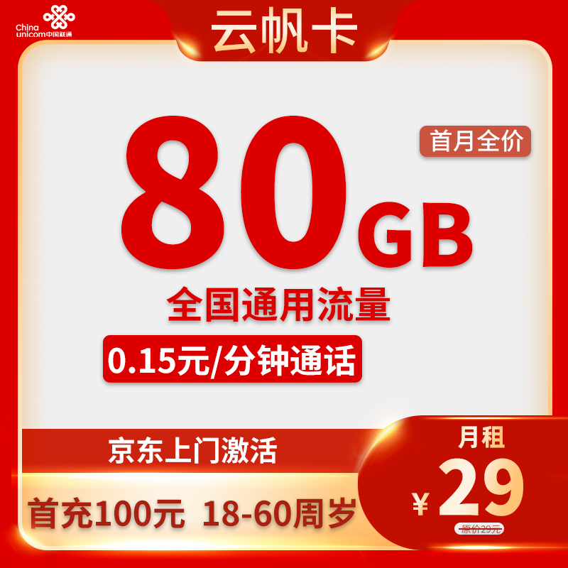 29元80GB通用流量+0.15元/分钟通话【只发四川省内】