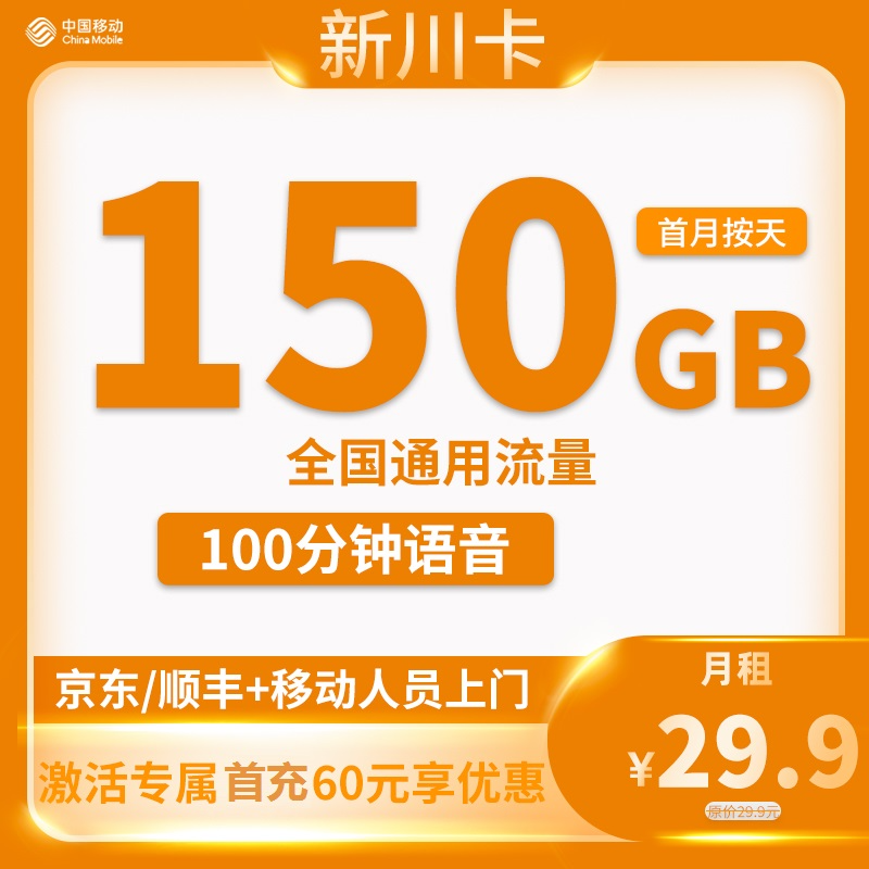 29.9元150G通用流量+100分钟通话【只发四川省内】