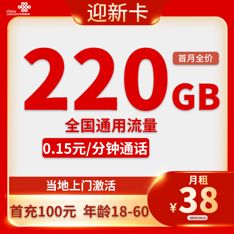 38元220G通用流量+0.15元/分钟通话【只发深圳市】