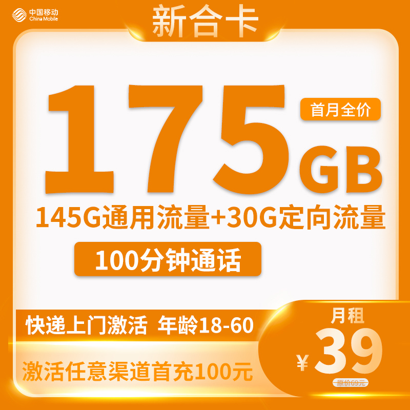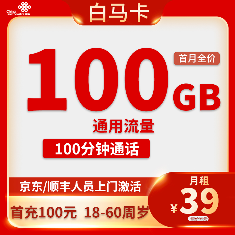 39元100G通用流量+100分钟通话【只发湖北省内】