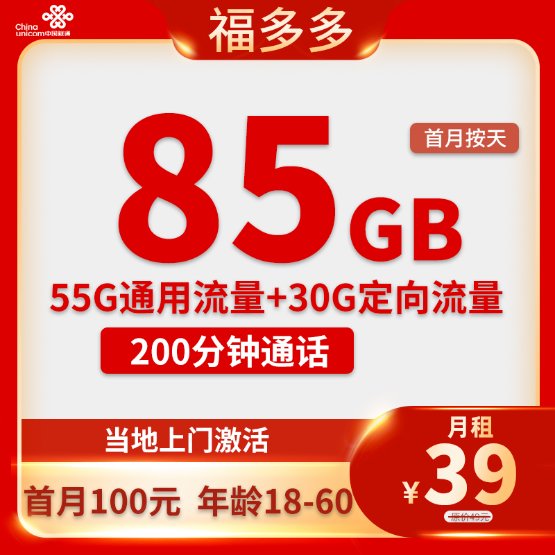 福多多39元/月85G流量+200分钟通话【只发江西省内】
