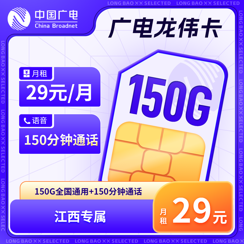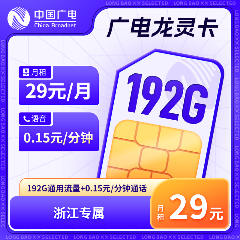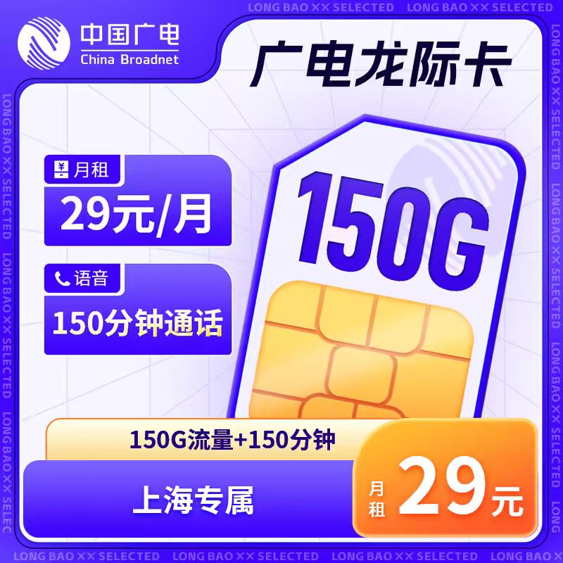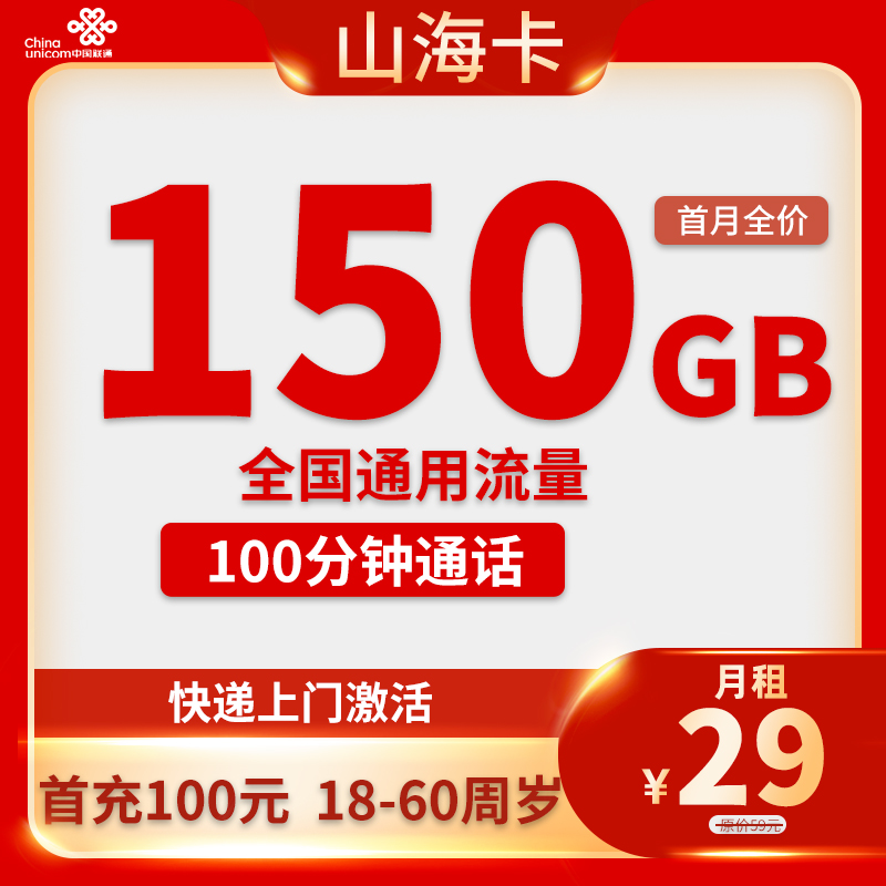 29元150G通用流量+100分钟通话【只发浙江省内】