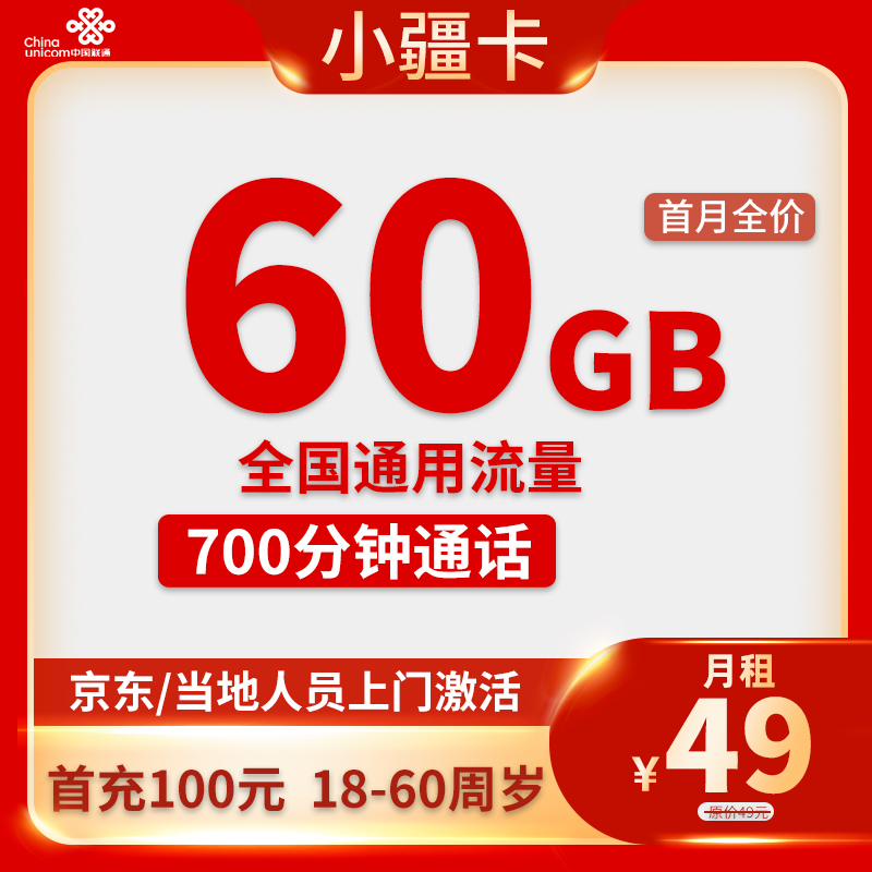 49元60GB通用流量+700分钟通话【只发新疆省内】